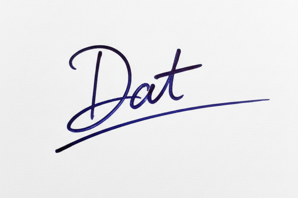 Phong cách Truyền thống và Rõ ràng: Dành cho những ai ưa chuộng sự chỉn chu, đáng tin cậy và minh bạch. Người theo phong cách này sẽ viết đầy đủ tên “Đạt” với các nét chữ tròn đều, rõ ràng từng ký tự, không quá cầu kỳ. Đây là kiểu chữ ký mang tính pháp lý cao, được đánh giá là rất đáng tin cậy và phù hợp với các công chức, nhân sự hành chính, luật sư, hoặc giáo viên.