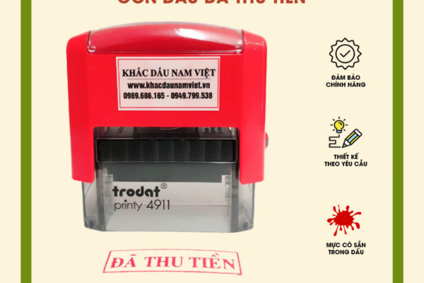 - Chất lượng hàng đầu: Chỉ sử dụng vật liệu chính hãng, công nghệ khắc laser hiện đại để tạo ra những chiếc Khắc dấu đã thu tiền sắc nét, bền đẹp theo thời gian.